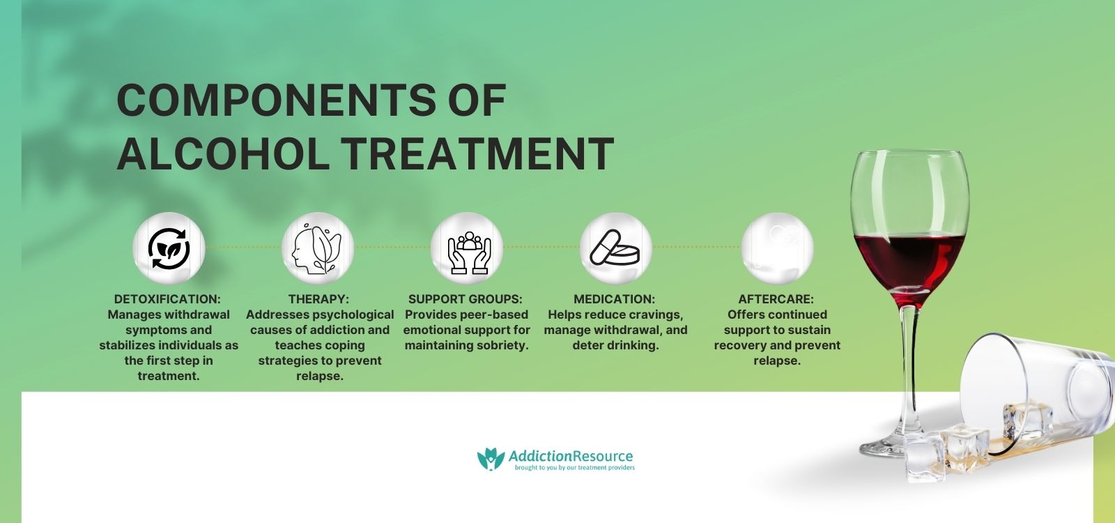The primary components of alcohol treatment are as follows: